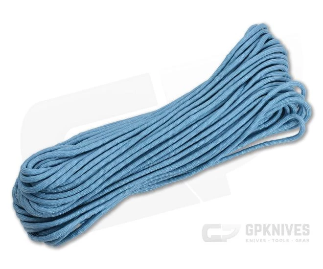 Tar Heel Sky Blue nylon Paracord in a 100 foot hank. 550 pound test with a 7 strand core. This Type III commercial nylon paracord is produced in the United States by a certified US Government Contractor.