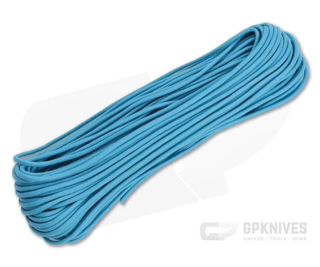 Turquoise nylon Paracord in a 100 foot hank. 550 pound test with a 7 strand core. This Type III commercial nylon paracord is produced in the United States by a certified US Government Contractor.