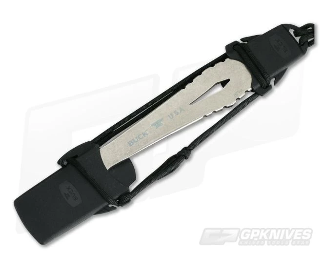 This version has about a 2.5 inch cutting edge drop point blade perfect for target practice and hunting small game like our ancestors. It’s Made in the USA with a thick full tang of Buck’s heat treated 420HC steel and given a worn-in stonewashed finish.