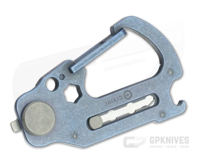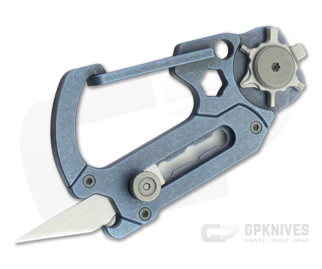 The CIVIVI Polymorph is an ultralight multi-tool disguised as a simple titanium carabiner. Coming in at an easy to carry featherweight sub-ounce weight, the Polymorph is easy to carry and delivers a replaceable stainless steel utility blade, bottle opener, hex driver and rotating 6-bit driver all in a sub 3-inch package. This version comes in a tumbled blue finish.