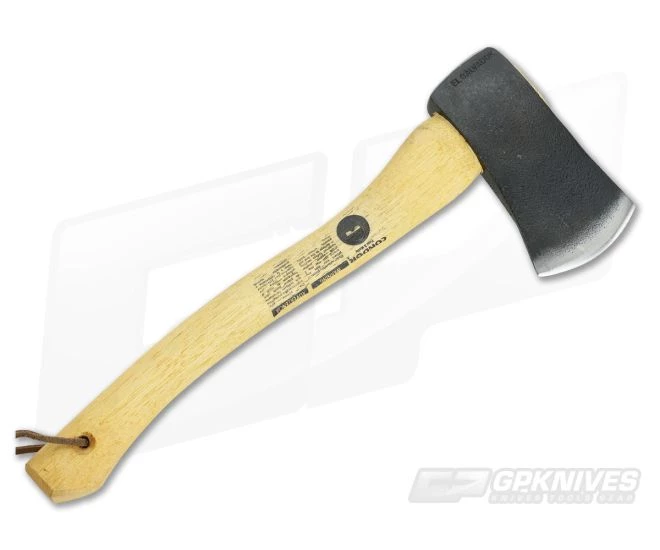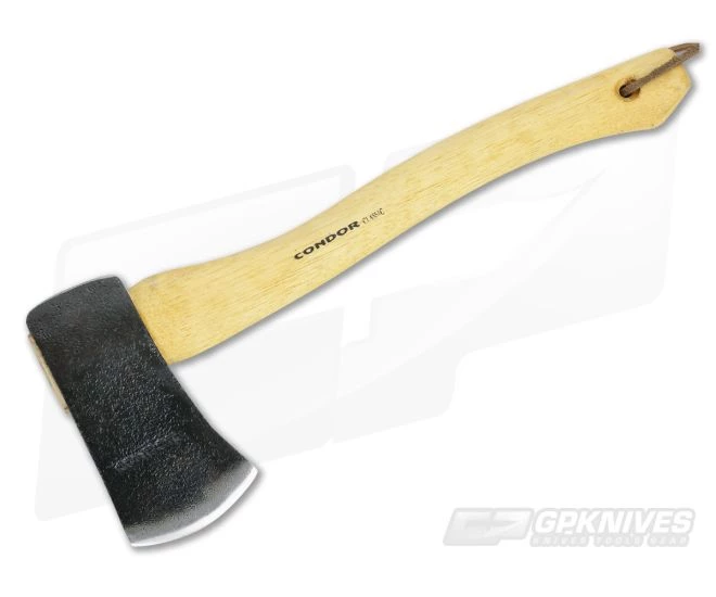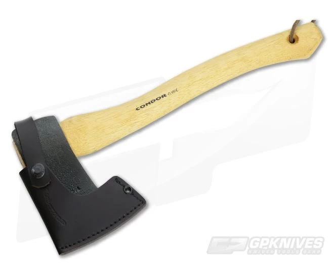 The Condor Tool & Knife Camping Hatchet is a classic pattern made from 1060 High Carbon Tool Steel offering a 1.25 pound head and 14.25″ American Hickory Handle. A perfect size for hiking or backpacking the Camping Hatchet comes with a high quality leather bit cover for safe carry.