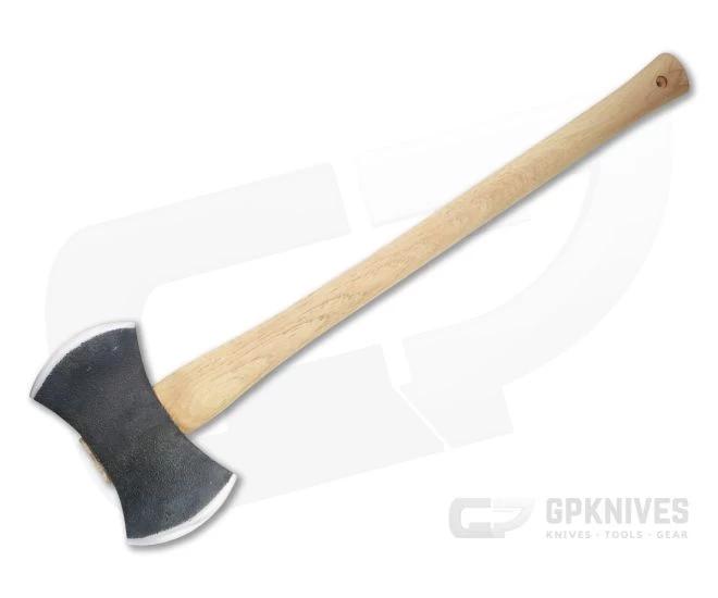 Head: 1060 Carbon Tool Steel is heat treated to 45-50 HRC, offering the optimal toughness you want in an ax. The head is hammer forge finished with polished edges for reduced friction in splitting, chopping and felling. Users often modify double bit axes to have one thin “racing” edge and one thicker edge for knots and more stubborn material.