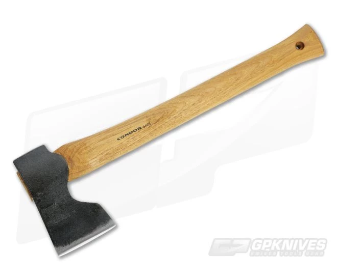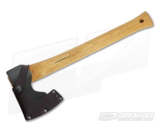 The Condor Tool & Knife Woodworker Axe has a 1.5 Lbs. head made from 1060 High Carbon Tool Steel and 16.25″ American Hickory Handle. A great all-around ax that excels chopping and splitting, the Woodworker Axe comes with a high quality leather bit cover for safe carry. The straight toe and drop heal of the bit make the Greenland Pattern a fast an accurate chopper capable of making quick work of kindling or light limbing work.