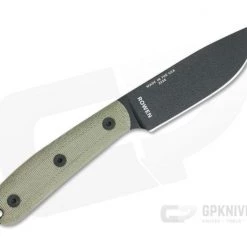 Handle:Â Modified from the original ESEE 4, the handle scales have a palm filling curvature that is more conventional among survival style blades. Very comfortable in the hand, the canvas Micarta scales are also impervious to extreme heat/cold and perform superbly when wet. Scales attached via oversize Allen screws. Exposed tang offers lanyard hole with attached green paracord.