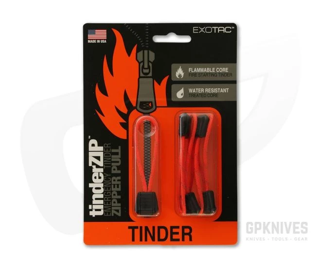 The TinderZip is an emergency tinder zipper pull made with Live Fire Gear Fire Cord which has a highly flammable, water-resistant, easy to ignite tinder core. The exterior is reflective, high-viz Orange nylon cord and the ends are easy to grab, durable, polymer locks.