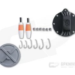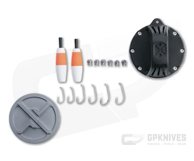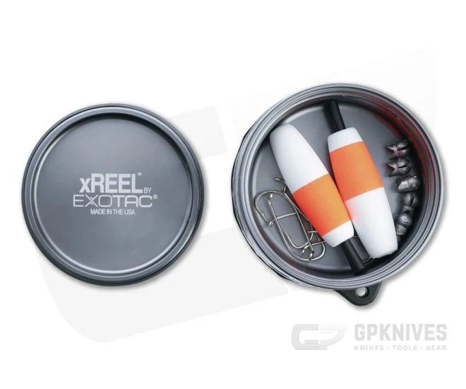 Exotac delivers quality and innovation with their xREEL pocket fishing kit. The anodized 6061 aluminum body is lightweight and durable, with an internal compartment that houses your tackle. On the exterior is a TPE rubber strap that serves as a handle with lanyard attachment point. Near the strap base, the circumference of the body has milled hook parking holes and a wide channel for line, 50 feet of 30-lb test mono-filament included. Compact and lightweight at under 5 ounces, the xREEL is great to toss into a pocket, pack, or survival kit for small fish acquisition. This version comes anodized Gunmetal gray.