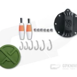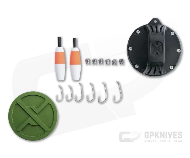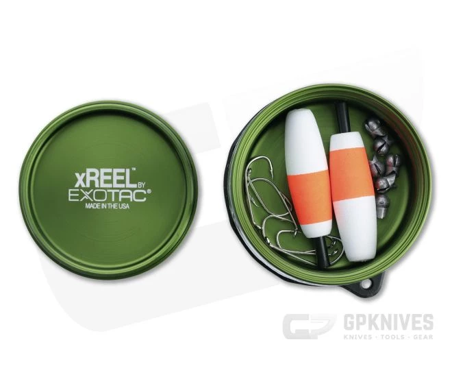 Exotac delivers quality and innovation with their xREEL pocket fishing kit. The anodized 6061 aluminum body is lightweight and durable, with an internal compartment that houses your tackle. On the exterior is a TPE rubber strap that serves as a handle with lanyard attachment point. Near the strap base, the circumference of the body has milled hook parking holes and a wide channel for line, 50 feet of 30-lb test mono-filament included. Compact and lightweight at under 5 ounces, the xREEL is great to toss into a pocket, pack, or survival kit for small fish acquisition. This version comes anodized OD Green.