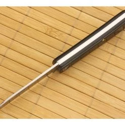 The Handle: Thick, contoured Black linen Micarta handle scales are pinned to stainless steel liners and secured with a brass lanyard tube, pin and steel pivot pin. The Micarta is chamfered for a comfortable feel in-hand while the black coloring won’t show signs of wear. The butt end of the handle sweeps up to balance out the blade.