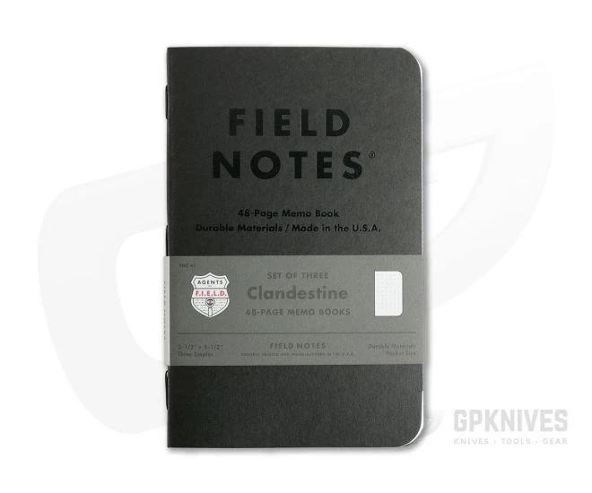 The classic 31⁄2” wide by 51⁄2” Clandestine memo books come in 3-Packs with 3/16″ × 3/16″ (4.7mm × 4.7mm) Dot-Graph Grid, Opaque Smooth 60#T “Bright White” Finch Paper, Urban Gray Mohawk Via Antique Vellum 80#C cover and stealthy gloss black staples.