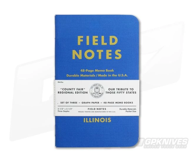 Each County Fair 3-Pack highlights an individual U.S. state (this one is for Illinois) with one memo book each in the colors of 1st, 2nd and 3rd place County Fair ribbons; blue, red and yellow. They’re printed on 100-lb. linen cover stock and all three feature metallic gold printing and 48 pages of graph paper with light blue/grey lines inside. The back covers feature a bevy of meticulously-researched state facts and figures.