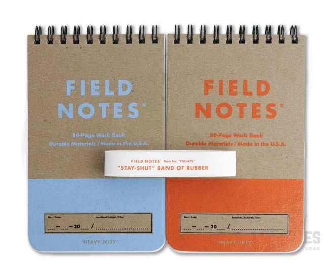 The brand new Field Notes Seasonal Release for the Summer of 2020 is the “Heavy Duty” Edition. Each pack contains a pair of memo-sized Work Books, durable enough for your toughest assignments thanks to the extra-beefy “Super Duty Chipboard” covers which are screen-printed with thick, opaque ink (One DDC Orange and one Blue Sky Blue). Top bount with sturdy Double-O Wiring, for easy one hand access each book contains 80 pages, Ruled on the front with a Double Graph Grid on the back perfect for making lists and sketching out plans. Each pack includes a “Stay-Shut” Band of Rubber to keep everything secure when packed away.