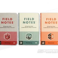 This 27th Quarterly Edition is a set of six books, boxed in a sturdy 60-pt custom slipcase with a sheet of crack-and-peel decals. Each of the books focuses on one DIY discipline: Wood Working, Automotive, Gardening, Painting, Plumbing, and Electrical — each containing tips, reference materials and the usual FIELD NOTES wise-cracking. The six covers are color-coded to compliment six tones of 100-lb cover stock from the French Paper Company’s terrific new “Kraft-Tone” paper, their first new grade in five years. The 70-lb text Kraft-Tone “Standard White Kraft” body pages feature our dot-graph, and are bound with tough brass staples