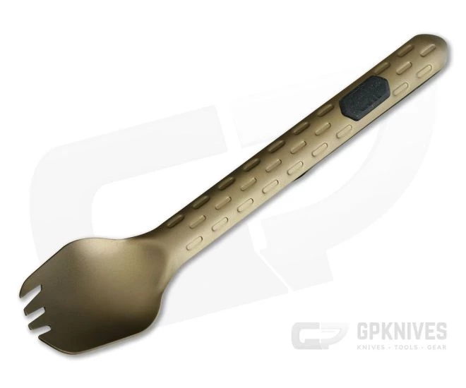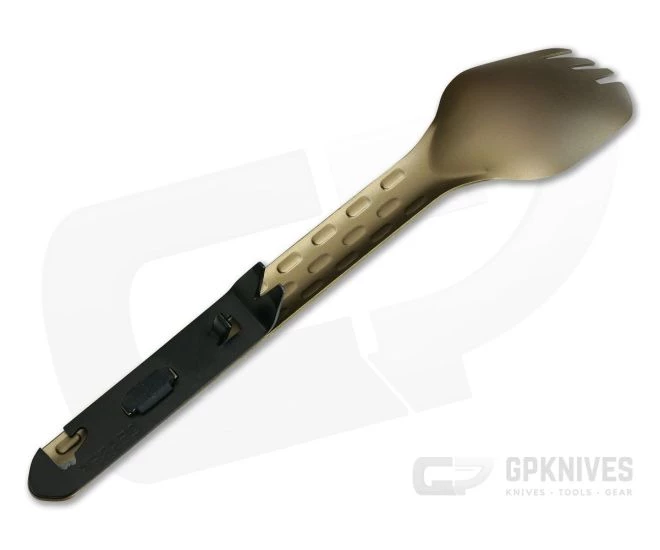 The Gerber Devour Multi-Fork in Burnt Bronze is an excellent trail companion thanks to a sub-one ounce, lightweight construction and an integrated, removable multi-tool. The Devour has you covered from prep to clean-up with multiple tools on hand. With the multi-tool mounted your spork stays out of the dirt with thanks to the unique kickstand design.