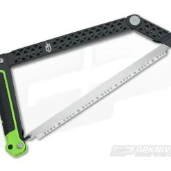 Compact, efficient and safe are all qualities you want in an outdoor tool and are all found in the Gerber Freescape folding camp saw. Utilizes 4 pivot points the Freescape folds down around the 12″ saw blade for secure carry and offers a very small footprint for packing. Opening is simple and smooth, giving you access to the full 12″ cutting surface of the saw blade. Bright green accents make the Freescape easy to find while the rubber overmold gives you a secure and comfortable grip. Standard 12″ blades can replace the included blade.
