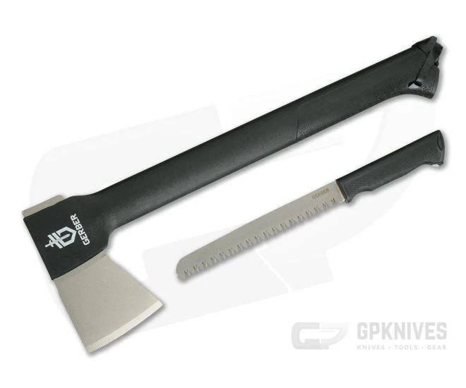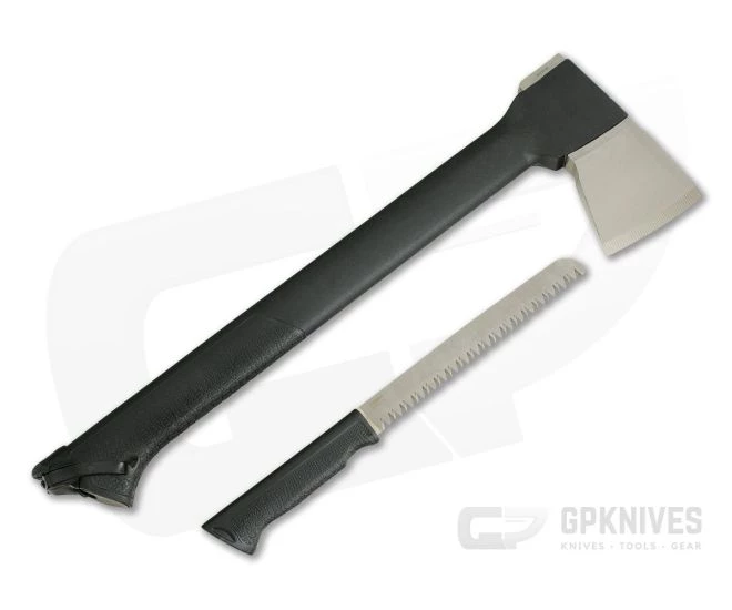 The Gator Combo Axe II from Gerber was designed with hikers and campers in mind delivering a lightweight powerhouse combination with a longer handled axe for serious chopping and a 6 inch cross cut saw for fast and efficient work. Both saw an axe are equipped with the popular and high traction Gator Grip rubber over mold over highly durable glass-filled nylon for the best combination of durability and light weight. A nylon sheath is included for belt carry of the axe while the saw is retained in the hollow handle via magnets with a rubber cap for added security.