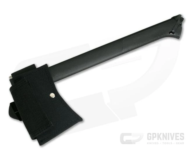 The saw fits securely in the handle of the axe and a nylon sheath is included for carry.