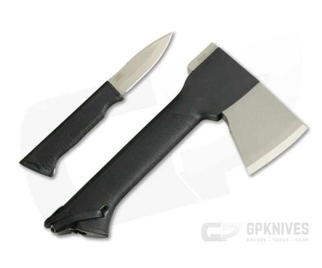 The Gator Combo Axe from Gerber was designed with hikers and campers in mind delivering a compact yet powerful pack axe and a highly functional fixed blade is a lightweight and compact package. Both knife and axe are equipped with the popular and high traction Gator Grip rubber over mold over highly durable glass-filled nylon for the best combination of durability and light weight. A nylon sheath is included for belt carry of the axe while the knife is retained in the hollow handle via magnets with a rubber cap for added security.
