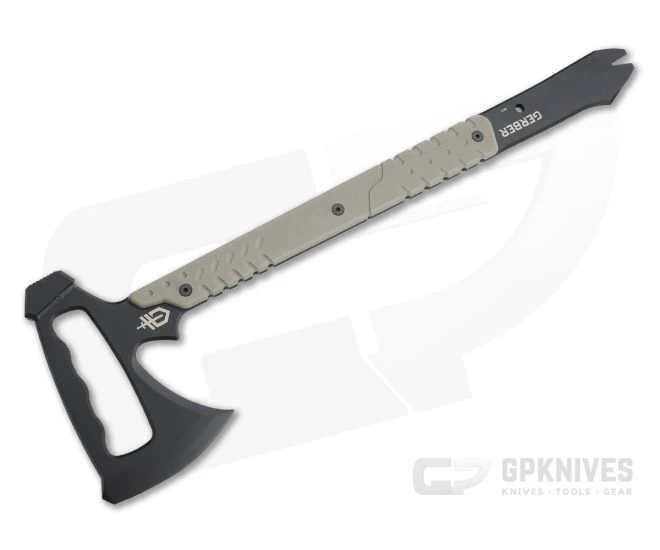 The Tactical Downrange Tomahawk from Gerber Gear is a purpose built breaching tool that is a functional as it is durable. Axe, hammer and pry bar all in one, the Downrange has a solid stainless steel, full tang construction making it strong and easy to maintain. Finished in a stunning black Cerakote coating paired with tan G10 scales offering a low-profile, high traction professional grade tool you can count on.