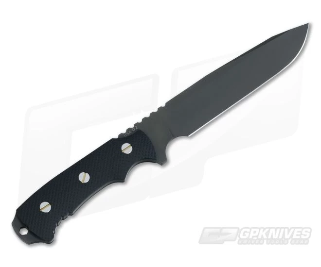 The Fieldtac 7.0 fixed knife from Rick Hinderer Knives is an all-purpose outdoor tool. Built from a full tang of tough D2 tool steel, there’s nothing it can’t handle. This one has a Black (Diamond-Like Carbon) coated finish with diamond textured Black G-10 handle scales.Â