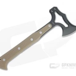 Head: Matte Cerakote coated S7 tool steel forms the head and partial tang with a sweeping cutting edge and pointed heel and tow delivering both slicing and piercing capability. A flat pole can be used as an impact tool and has two holes to accept optional hammer, spike and pry bar accessories (not included). The skeletonized head reduces weight for optimal speed and functions with the sheath for secure carry.