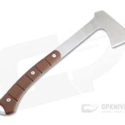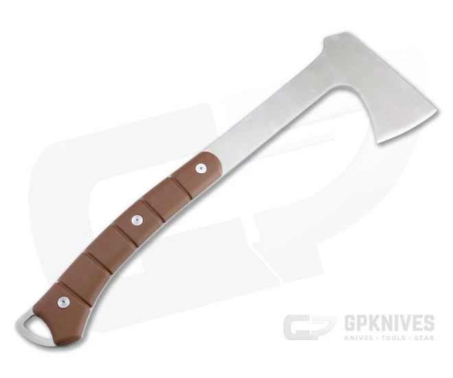 Handle: Supported by the full tang construction, the durable, and weather resistant brown TPR molded scales deliver exceptional traction with grooves for added security. The knob keeps the axe in hand during heavy chopping with a large hole for lanyard attachment if enhanced retention is required.