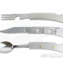 The Kabar Original HOBO folder with stainless steel handle and 420J2 stainless steel clip blade, fork and spoon. Nail nick for easy opening of blade. Stainless steel liners. Separates into knife, fork and spoon for ease of use. Nylon belt sheath.