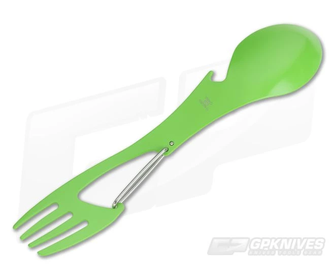 The Kershaw Knives Ration XL is a 60% larger version of the standard Ration multi-tool. If you camp, backpack, hike, or hunt, or even just grab lunch between classes or at a desk this is an essential tool. Features include a fork, spoon, bottle opener and carabiner gate for attachment to just about anything.This version comes with a food safe, spring green coating over the stainless steel construction which will serve you many meals along the way.