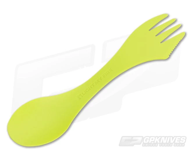 The Light My Fire Original Spork is a handy spoon, fork and knife combo with ultra-durable highlighter yellow Tritan plastic construction. Ready for the wild of the hike or the daily grind, the Light My Fire Spork is lightweight, portable, environmentally friendly and BPA free. Will not scratch cookware or melt in boiling water. Dishwasher safe.