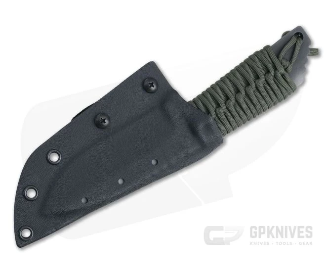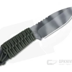 Handle: The Green Paracord wrapped handle fills the hand nicely with a high center ridge and provides a lanyard extension off the bottom. This model has a “Strider” style handle that provides for a secure grip while the aggressive spine jimping enhances traction in multiple grips. It will hold up well in the elements and the paracord is easily replaceable.