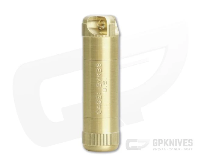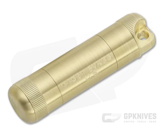 While the original government use is unknown, the A/B Cache dual compartment capsule offers an extremely compact storage option for your EDC needs. Water tight on both ends and offering 2 different size containers from each end this is a highly versatile storage container. Keep one in your car, home and work and always be ready with one on your keychain. Brand new, never used overrun from government contract. This version is solid C360 brass.