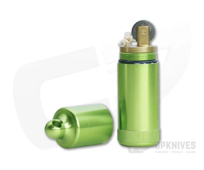 A perfect addition to your First Aid Kit, EDC / Prepper bag, car, kitchen or backpack the Maratac XL Peanut Lighter has a body machined from solid Aerospace Grade Aluminum for lightweight durability. The removable solid brass lighter insert allows it to be used as a waterproof pill vial, and it can be attached to a split ring for key-chain carry. This version comes in an anodized green finish.