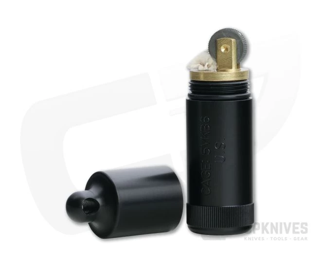A perfect addition to your First Aid Kit, EDC / Prepper bag, car, kitchen or backpack the Maratac XL Peanut Lighter has a body machined from solid Aerospace Grade Aluminum for lightweight durability. The removable solid brass lighter insert allows it to be used as a waterproof pill vial, and it can be attached to a split ring for key-chain carry. This version comes in an anodized matte black finish.