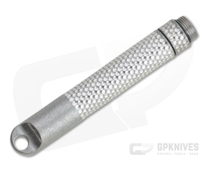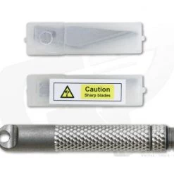 Constructed entirely of Grade 5 Titanium, Maratac’s Key Ring Collapsible Scalpel is always ready at hand when precision cutting is required. Non-slip golf ball pattern texture provides 300% more gripping surface for a secure grip while the #11 hobby blades cut clean and are easily replaceable once they dull. The blade stows in the handle when not in use making this a great keychain or neck lanyard carry. Includes 18 spare blades.