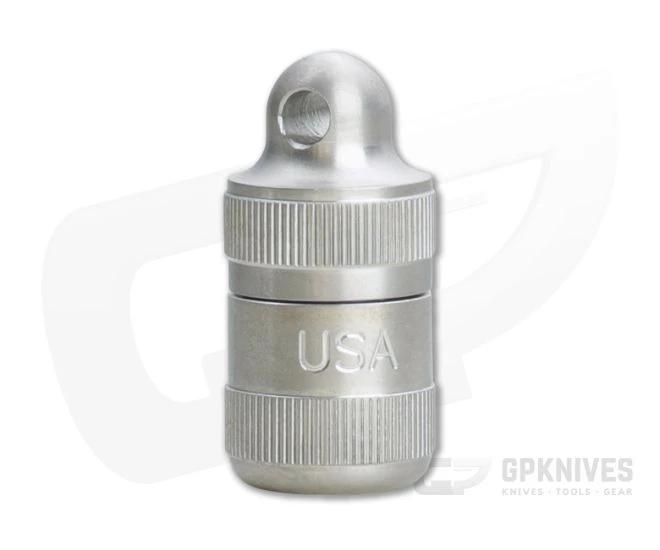 While the original government use is unknown, the Pico Pull capsule offers an extremely compact and lightweight storage option for your EDC needs. This water tight capsule is perfect for a zipper pull and is a highly versatile storage container for small items. Keep one in your car, home and work and always be ready with one on your keychain. Brand new, never used overrun from government contract. This version is solid stainless steel.