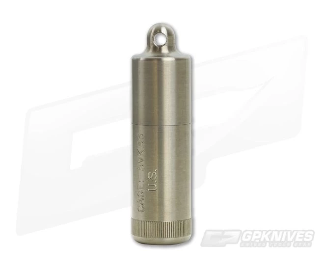 A perfect addition to your First Aid Kit, EDC / Prepper Bag, Car, Kitchen or Backpack the Maratac XL Peanut Lighter has a body made from 6AL4V Grade 5 Titanium which is able to be anodized via either chemical or heat process. The removable Solid Brass lighter insert allows it to be used as a waterproof pill vial. Can be attached to a split ring for key-chain carry.