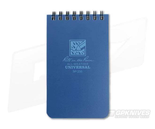 The Rite in the Rain 3″ x 5″ All-Weather Notebook with Blue cover is the perfect outdoor writing companion. Made with a Blue Polydura cover, the spiral bound book has 100 universal pages (50 sheets) of white Universal page pattern all-weather writing paper. This environmentally friendly paper is just as recyclable as normal paper and ensures your notes survive the elements.