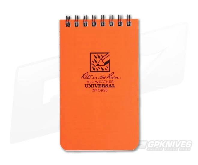 The Rite in the Rain 3″ x 5″ All-Weather Notebook with Blaze Orange cover is the perfect outdoor writing companion. Made with an Orange Polydura cover, the spiral bound book has 100 universal pages (50 sheets) of light gray Universal page pattern all-weather writing paper. This environmentally friendly paper is just as recyclable as normal paper and ensures your notes survive the elements.