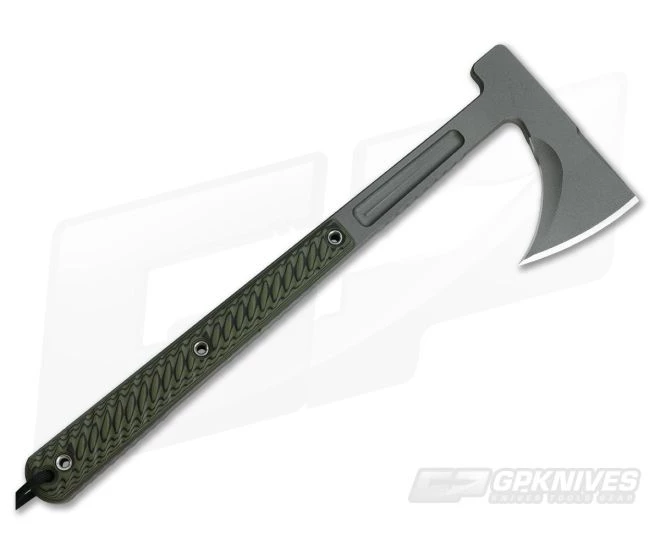 The Head:Â The CNC Machined head is made from 80CRV2 treated to 56 HRC at the cutting edges for durability and edge retention. The head sports a razor sharp 3″ cutting face and a beefy hammer pole opposite. The head is Tungsten Cerakote coated for a non-reflective and corrosion resistant finish. The Kestrel is sharp and fast, swooping down on its prey in a flash.