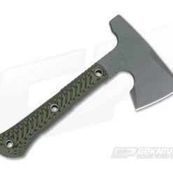 The Head:Â The CNC Machined head is made from 80CrV2 treated to 57-58 HRC. The Mini Jenny sports a razor sharp, 2 5/8″ forward edge with sharpened beard. This version has an unsharpened top swedge that tapers from full thickness, parallel to the index finger cutout, down to the razor sharp forward edge. As the name implies this version has a hammer pole for woods use or any other situation where you find yourself in need of a hammer. The head is Cerakote finished for a low level reflectivity and enhanced protection from corrosion. One look at the Mini Jenny and you’ll know she means business.