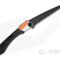 An essential piece of survival equipment, a wood saw is more efficient the longer it is but also becomes more difficult to carry. The SOG Folding Saw strikes a near perfect balance with an 8.25 inch blade of hardened and tempered carbon steel that makes short order of branches, small logs and brush. Disengage the lock and the blade folds neatly into the comfortable TPR handle that gives a secure grip for deep cuts on both pull and push strokes thanks to the sharp bidirectional teeth. Differentially tempered the blade has a long life and cuts well on green as well as hard wood. Includes black nylon sheath for carry.