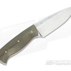 The Blade: Thick 52100 tool steel is built to take a beating. This one comes fashioned into a handy drop styled blade design with excellent piercing tip. The satin finish on a big hollow grind is contrasted by raw textured flats. They make a good combo. Its nearly four inch cutting edge should serve its user well.Â