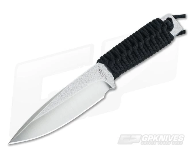 The WP model by Strider Knives is a compact, lightweight fixed blade option that you can strap to your pack or person and hardly notice until you need it. These are all hand ground from dependable PSF 27 tool steel alloy and feature a paracord wrapped handle. The same Strider bite in a smaller, more concealable package.