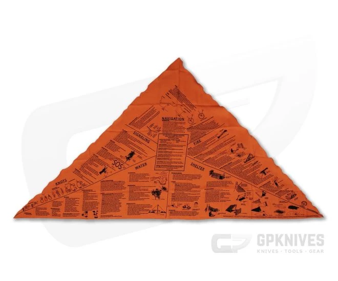 The Head for Survival Triangular Bandana / Cravat is a multi-function tool that provides a wide variety of uses in one piece of gear. Containing essential survival information organized by topic: Navigation, Fire Starting, Shelter, Water Collection & Purification, Signaling, Knots and Priority considerations. Made from comfortable and durable brushed polyester with color fast ink, the edge seams are lock stitched for increased strength. Included are two 2” safety pins for use in sling construction. This ultralight, compact, multi-use tool is an essential piece of kit wherever your adventures may take you.