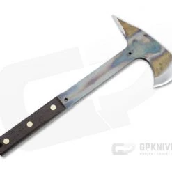 Head: The ~7.5 mm full tang carbon steel head and tang make this hawk a hefty and durable tool, whether chopping or throwing. A satin finished convex edge offers powerful chopping performance with strop-friendly maintenance while the spike pole makes this a devastating combat tool. Forge finished flats are practical and appealing.
