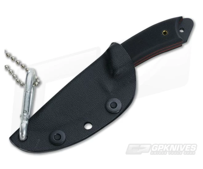 Similar to the Sparrow Hawke but with an updated coating and handle material. Just like talons of the bird it’s named for, this sharp knife can tackle small game with ease. Solid full tang construction with built-in lanyard hole and matching black micarta handle with red liners. Tough 1095 tool steel blade and durable black traction coating show that this knife is ready for service. Makes a great addition to bug out bags or 72 hour kits. Comes with a kydex sheath with neck chain and carabiner.