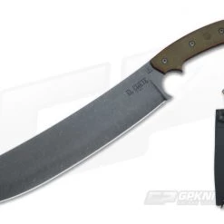 The El Chete chopper from TOPS Knives was built to demolish. Period. End of story. This blade is massive with a super thick blade that delivers cutting power comparable to a hatchet or small axe. Such a blade requires a fitting handle and the dual layered canvas Micarta will fill the hand and look good doing in the process. This version comes with a blade of Midnight Bronze Cerakote coated 1095 carbon steel with green and black Micarta scales and Kydex sheath with leather drop loop dangler.
