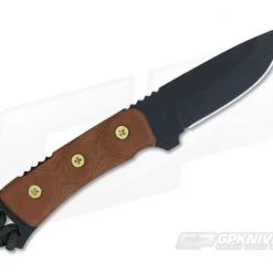 It’s hunter’s point blade shape is perfect for skinning dinner and getting your fire going. A 3.50 inch cutting edge makes an excellent size for beginners and experienced outdoorsmen alike. Oiled tan canvas micarta scales have a slimmer, more contoured profile than the original Overlander for a lighter carry option. They are attached to the tang via 6 brass screws over red fiber liners for a comfortable feel in-hand.