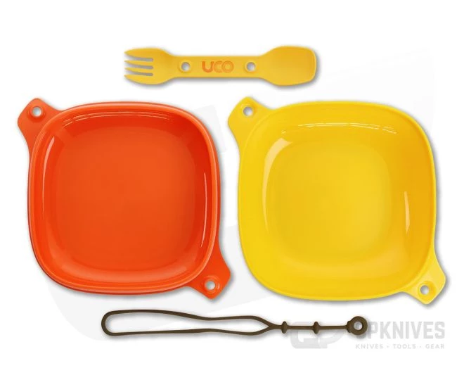 The UCO Four Piece Mess Kit Bamboo Elements is a lightweight, durable, functional and stylish mess kit for all your outdoor needs. Each kit includes 4 Pieces: 1 bowl/container, 1 lid/plate with silicone gasket, 1 Spork and 1 reusable tether. The spoon edge radius is designed to fit perfectly into the corners of the container to get every morsel of food for efficient consumption and easier cleanup. The lid and container seal tight to avoid cross contamination and the Spork is built to last with a Lifetime Warranty. The reusable tether holds everything together, can be used to hang dry the kit and clips easily to a carabiner.
