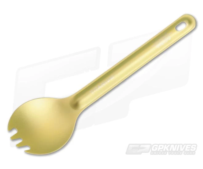 The Vargo Ultra Light Titanium Spork with Yellow anodized finish is a handy spoon/fork combo with ultra-durable titanium construction. This utensil will weather any storm with you and should be included in any outdoor excursion. It won’t melt in boiling water and is perfectly dishwasher safe.