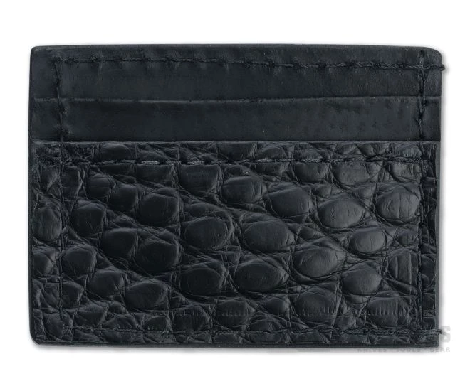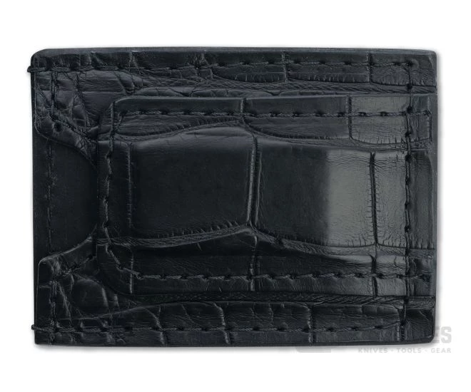 Handcrafted with time and attention to detail using traditional techniques passed down over centuries, Yoder Leather wallets are heirloom quality. This wallet is black tanned American Alligator skin leather with black leather lining, heavy-duty nylon thread and magnetic money clip.